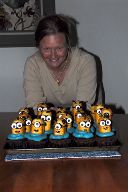 It took several days to assemble these Minions. First came baking the cupcake pants, and frosting them. Then the creation of Minion bodies. In the end, a Minion army for Xavier to command.