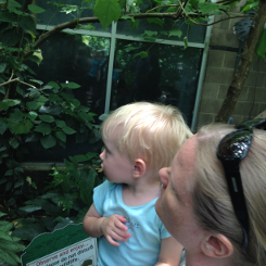 Xavier liked the aquatic exhibits. The ramps and walkways let him right up to press his nose against the glass. He saw fish, lobsters, big shrimp. We lifted him to touch a starfish, but he was more interested in splashing the water in the tank. We were a little bummed the octopus hid itself so well; we never saw it.