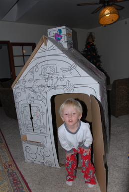 Of course, we had to build the house. Though it came with an instructional set of pictures, it still took nearly an hour to put it up. Then, as we left Xavier to his own devices coloring his own house, we heard it.