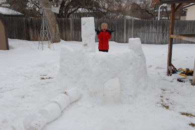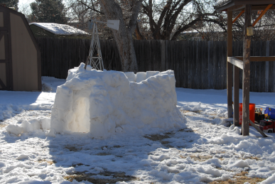 I told him if he did that, he would never finish the igloo. So, we added another one and a half rows to the wall. We even had a tunnel to crawl through to get inside.