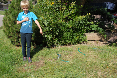 This summer, Xavier, under the tutelage of Mom, Dad and a knowlegable fellow at the lawn and sprinkler supply store, has spent time building an automatic watering system for his garden.